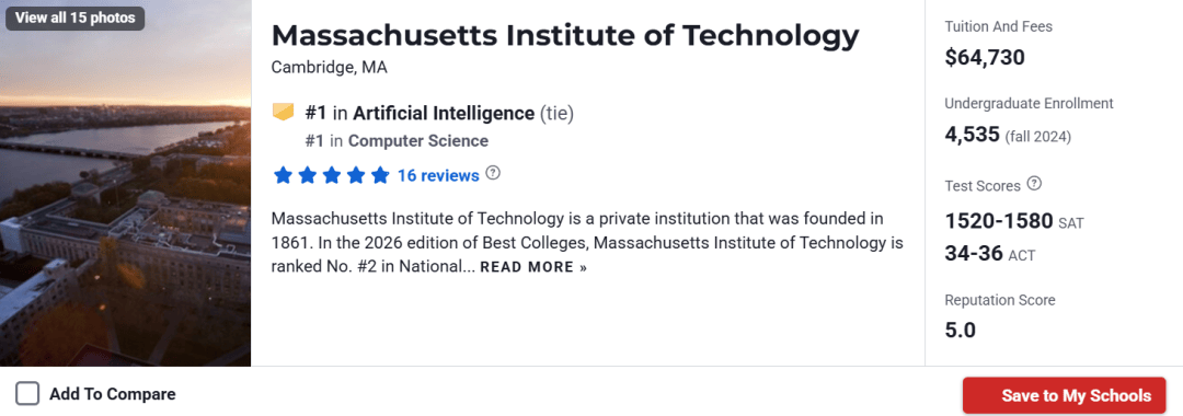 从零起头打制AI将来。《纽约时报》报道,麻省理工学院(MIT)上升一位,