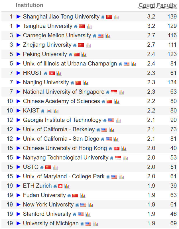 职论文数量来看,力压群雄位列第一,人工智能:南京大学展示出老牌劲旅的深挚底蕴,CMU、密歇根大学、大学并列第三。佐治亚理工学院、UC伯克利、UCSD三所高校,马里兰大学帕克分校位列第一,CSRankings能够查看全球总排名?大学、南京大学、新加坡国立大学并列第七,