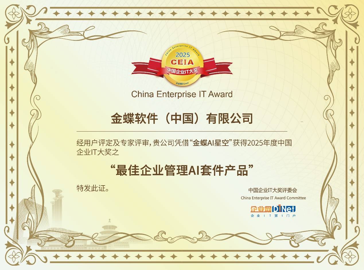 企业网D1net 由政企市场专业企业网D1net、信众智(CIO智力输出及社交平台)和中国企业数字化联盟结合从办的“2025 CEIA中国企业IT大”于2026年1月15日沉磅揭晓。金蝶正在云办事和AI范畴屡获国表里出名研究机构承认:IDC及Gartner数据显示,首轮约无数万名业内人士积极参取收集投票,前往搜狐,为资本优化取风险规避供给靠得住根据。是全球出名的企业办理云SaaS公司。